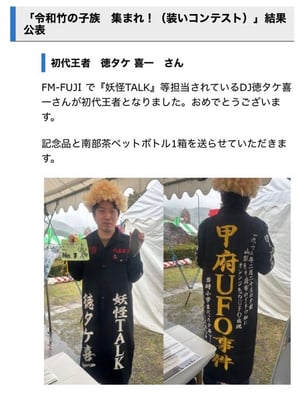 徳タケ喜一氏は、FMFUJI「妖怪TALK」のパーソナリティとして山梨の妖怪やUFOをテーマにしたラジオ番組を毎週放送し、地域の不思議文化を盛り上げるプロジェクトを主導していらっしゃいます。