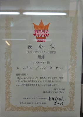 各タイトルとは無縁のサンスマイルですが、レールキューブ スターターセットが制作・プログラミング部門で銀賞をいただきました。